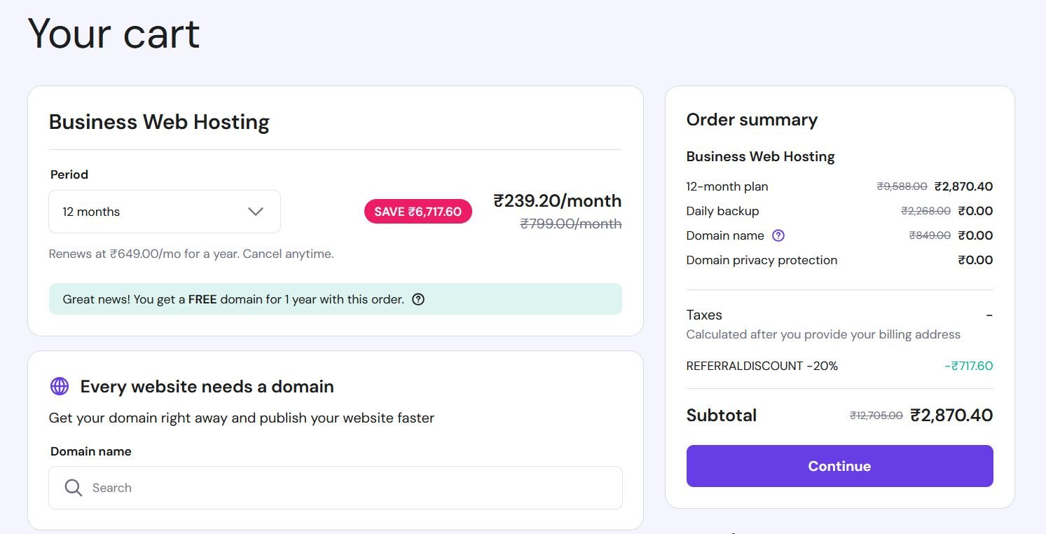 Screen Shot Of Hostinger Premium Web Hosting Plan 60% Discount Applied Live Proof
