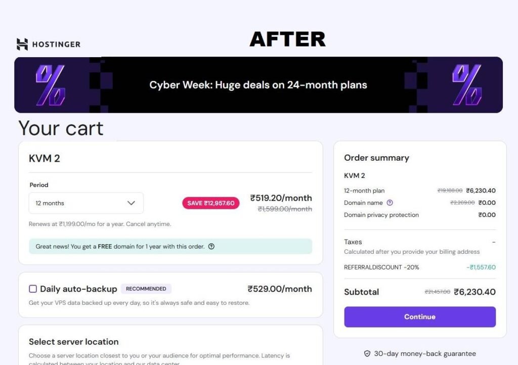 • Great value with discount: Regular 12‑month price is ₹7,788, but through your exclusive link it drops to ₹6,230, saving ₹1,557 on a higher‑spec VPS plan